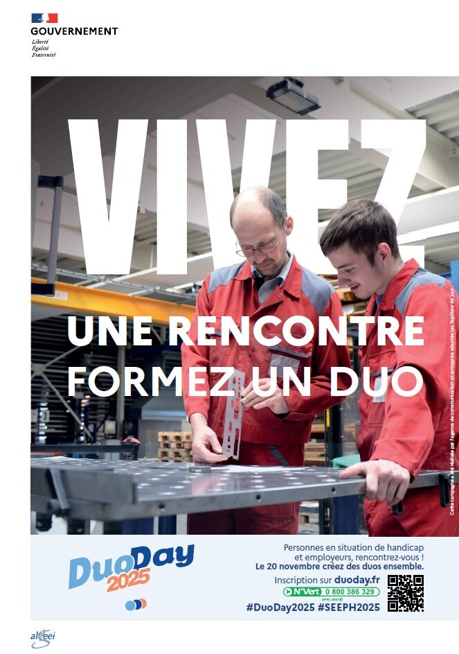 DuoDay 2025 se tiendra le jeudi 20 novembre partout en France, dans le cadre de la Semaine Européenne Pour l’Emploi des Personnes Handicapées (SEEPH) ! La plateforme est dès à présent ouverte pour les inscriptions !